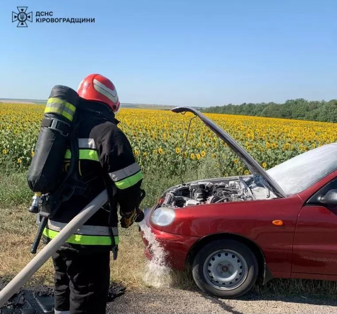 О 09:19 рятувальники отримали повідомлення, про загоряння легковий автомобіля Daewoo Lanos. Сталася ця подія на автодорозі Кропивницький — Кривий Ріг — Запоріжжя у Новгородківській громаді Кропивницького району.