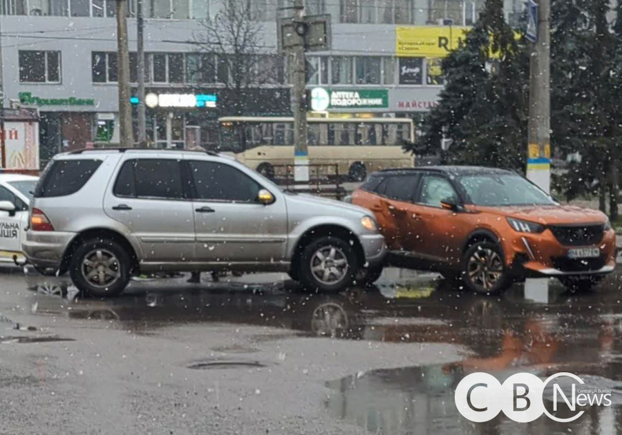 Поблизу площі Богдана Хмельницького у Кропивницькому водій Mercedes врізався у автомобіль Peugeot.
