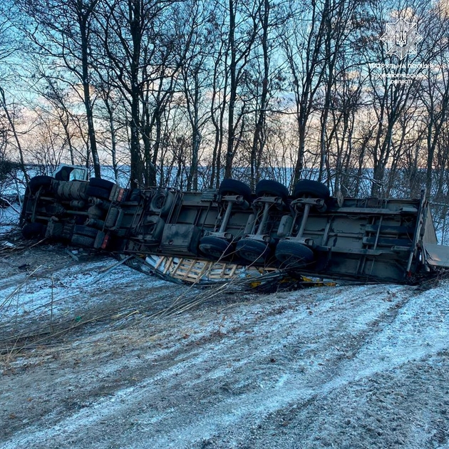 «Подія сталася вчора, близько 16:00, на автодорозі М-30 неподалік села Суботці Кропивницького району. Водій вантажного фургона Renault Premium з напівпричепом був неуважним, не дотримався безпечної швидкості руху та допустив виїзд свого транспортного засобу за межі проїзної частини у кювет, де він перекинувся», — повідомив речник.