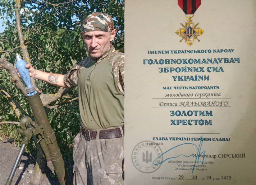 Колишнього енергетика, військовослужбовця Дениса Мальованого нагородили «Золотим хрестом» Головнокомандувача ЗСУ.