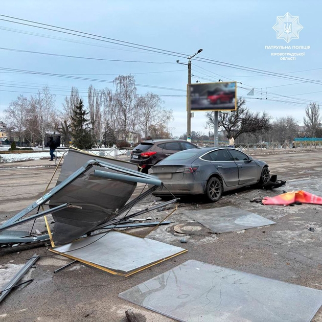 Skoda через це в’їхала у автомобіль Tesla, який рухався у попутному напрямку. Автомобіль Tesla своєю чергою наїхав на рекламну конструкцію. На щастя, ніхто не травмувався.
