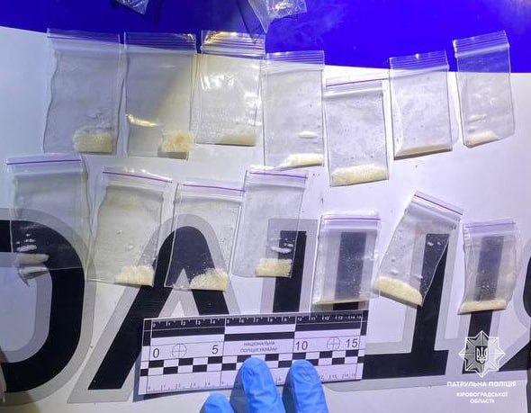 Під час комендантської години правоохоронці затримали у Кропивницькому чоловіка на позашляховику, з понад дюжиною пакетиків наркотиків, ймовірно він їх розповсюджував.