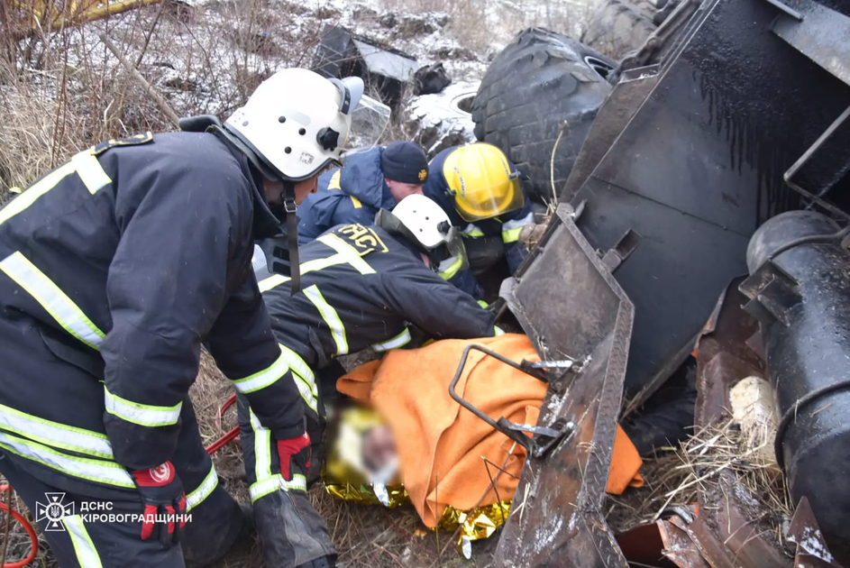 За Кропивницьким перекинувся автокран, двоє чоловіків у лікарні (фото)