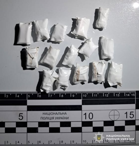 На території обласного центра 18-річний місцевий житель розкладав закладки. Його затримали правоохоронці. У наркозбувача знайшли та вилучили понад 30 згортків з метамфетаміном.