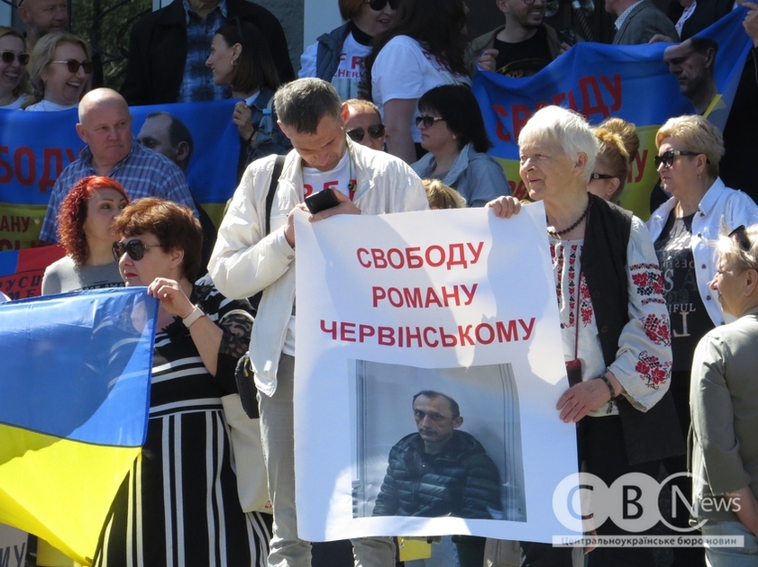Підтримати Романа Червінського зібралися кілька десятків людей, вбраних в одяг зі словами підтримки та відповідними плакатами.