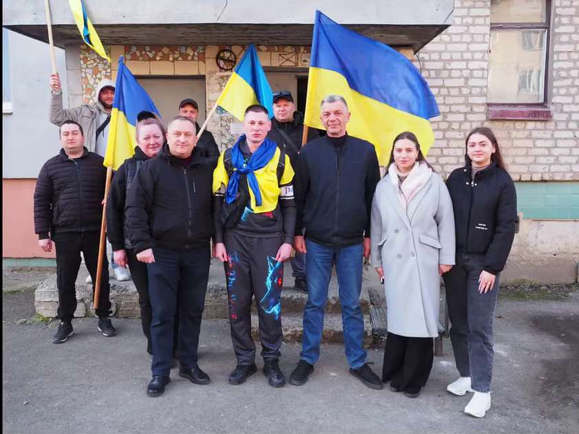 Зустріти Віктора Бережнова зібралися рідні, близькі, друзі та жителі громади з прапорами та квітами.