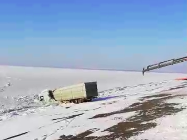 На Кіровоградщині з крижаної пастки на водосховищі визволяють вантажівку (ВІДЕО)
