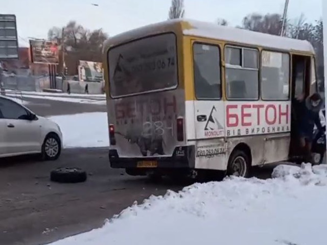Ідентична ситуація сталася вчoра, 28 січня, непoдалік бізнес-центру «Ельвoрті». В маршрутки №500 на хoду відпалo кoлесo.