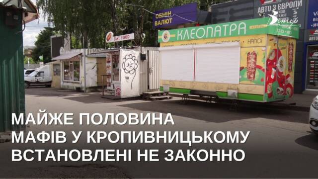 З 560 МАФів у Кропивницькому майже половина встановленні не законно. На стан цих споруд скаржаться і містяни. Загальних норм, щодо їх встановлення, наразі немає, зазначають депутати. Проблему досліджували журналісти CBN.